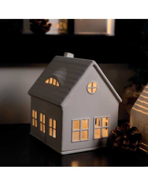 Photophore en porcelaine blanche - Maison fenêtres de toit