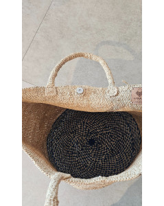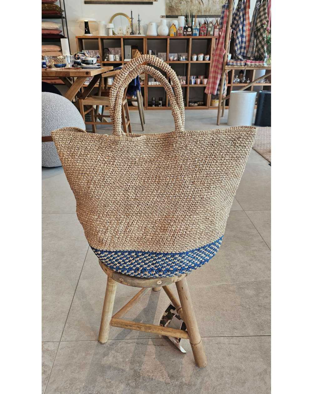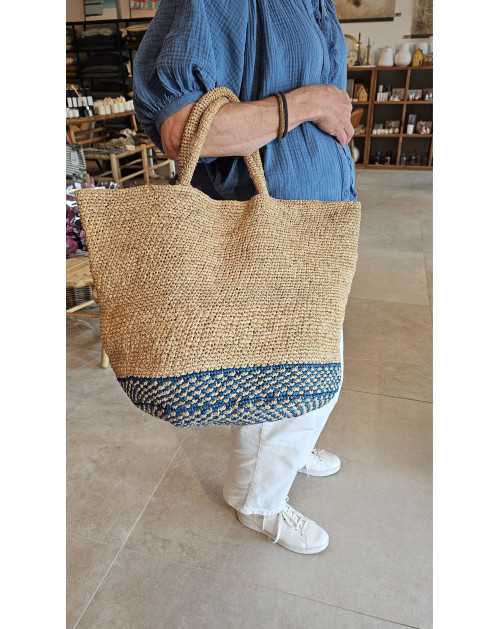 Cabas en raphia naturel et bleu ALEX