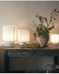 Matériaux: Pied en Grès et Argile - Abat-jour en Lin lavé blanc