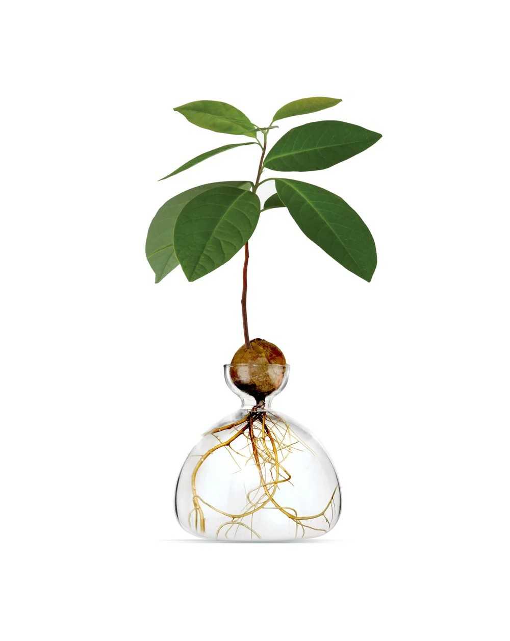 Le design pur et simple du vase Avocado, basé sur les principes de minimalisme, d'intemporalité et de fonctionnalité, vous permet d'observer la graine d'avocat à mesure qu'elle mûrit, donnant un aperçu des premières étapes de vie des plantes.