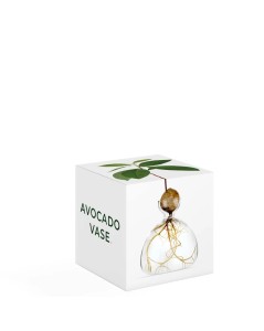 Le vase avocat (15 cm x 15 cm) est fabriqué en verre borosilicaté. Le vase comprend un manuel de 36 pages, qui guide l'utilisateur de manière réfléchie avec les étapes détaillées de germination de la graine et de culture du plant d'avocat. Le manuel contient des astuces et des conseils utiles sur les thèmes de l'eau, de la lumière, de la taille et du rempotage. Ainsi que des références historiques et des inspirations artistiques. L'emballage est imprimé sur du carton recyclé.